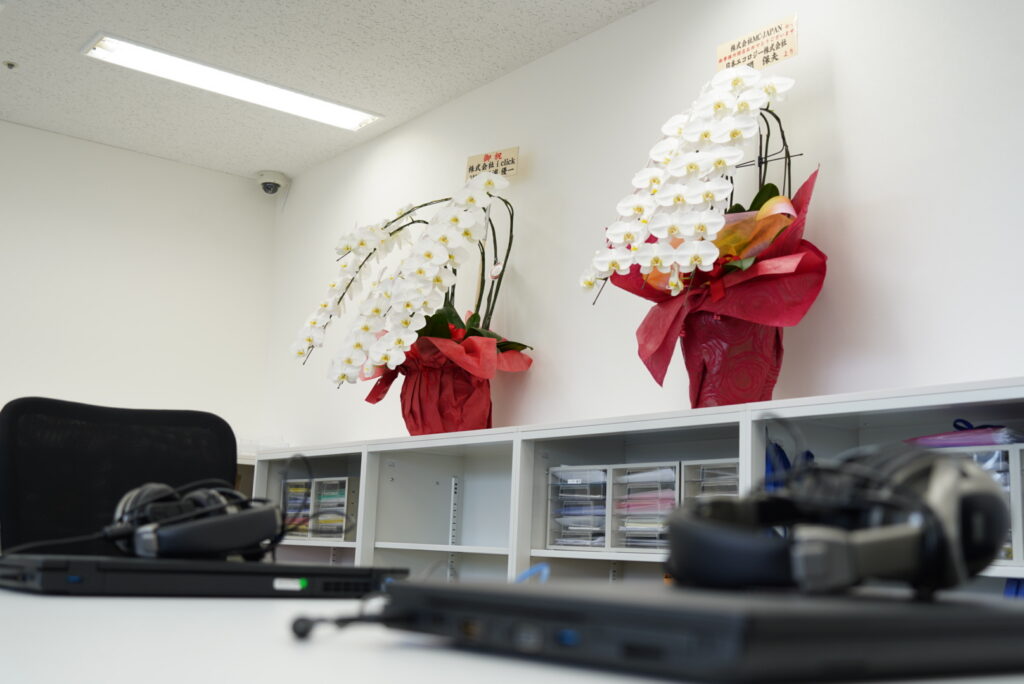 オープン時にいただいたお花も元気に咲いており、社内全体を見守っています🌸