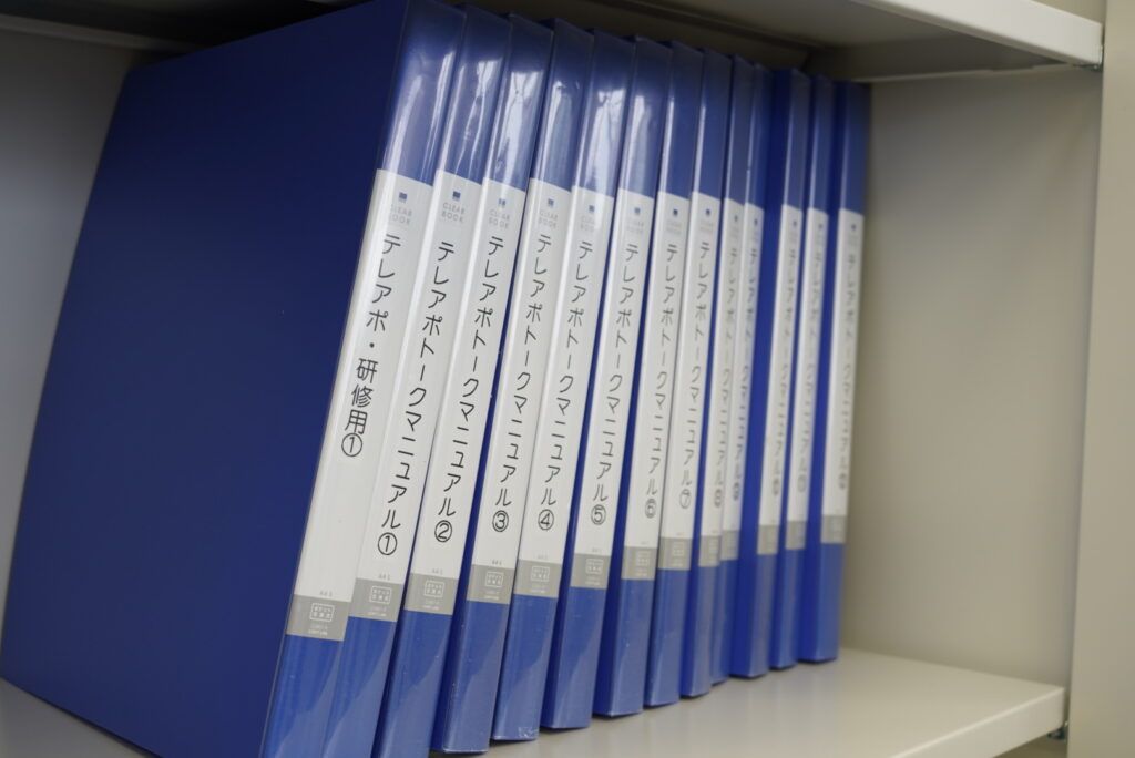 商品の情報やお客様とのトーク内容、話し方のコツなどが細かく書かれたアポイント業務に欠かせないファイルが並んでいます。