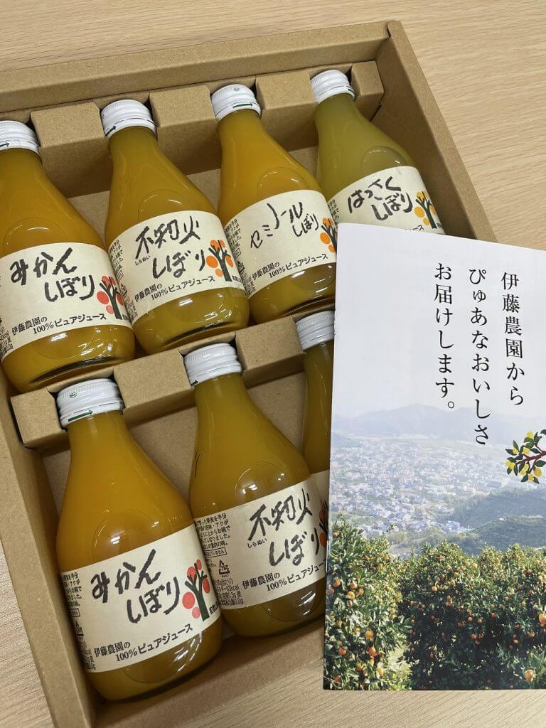 紀州の温暖な気候と黒潮から吹く潮風に恵まれた和歌山県有田市で、柑橘類の生産、搾汁、加工、販売までを手掛けている、伊藤農園の100%ジュース!