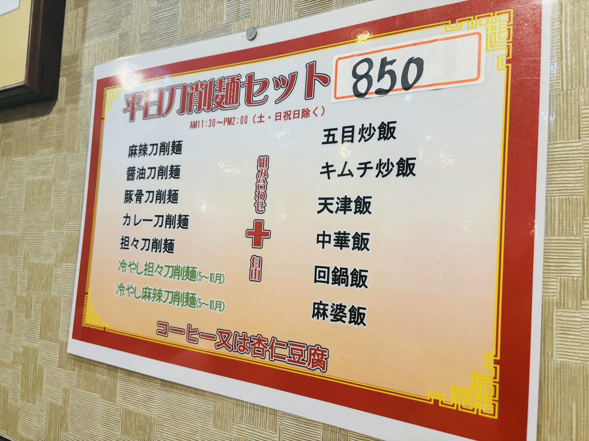 ランチセットは麺、ごはんもの、コーヒーか杏仁豆腐がついて850円!